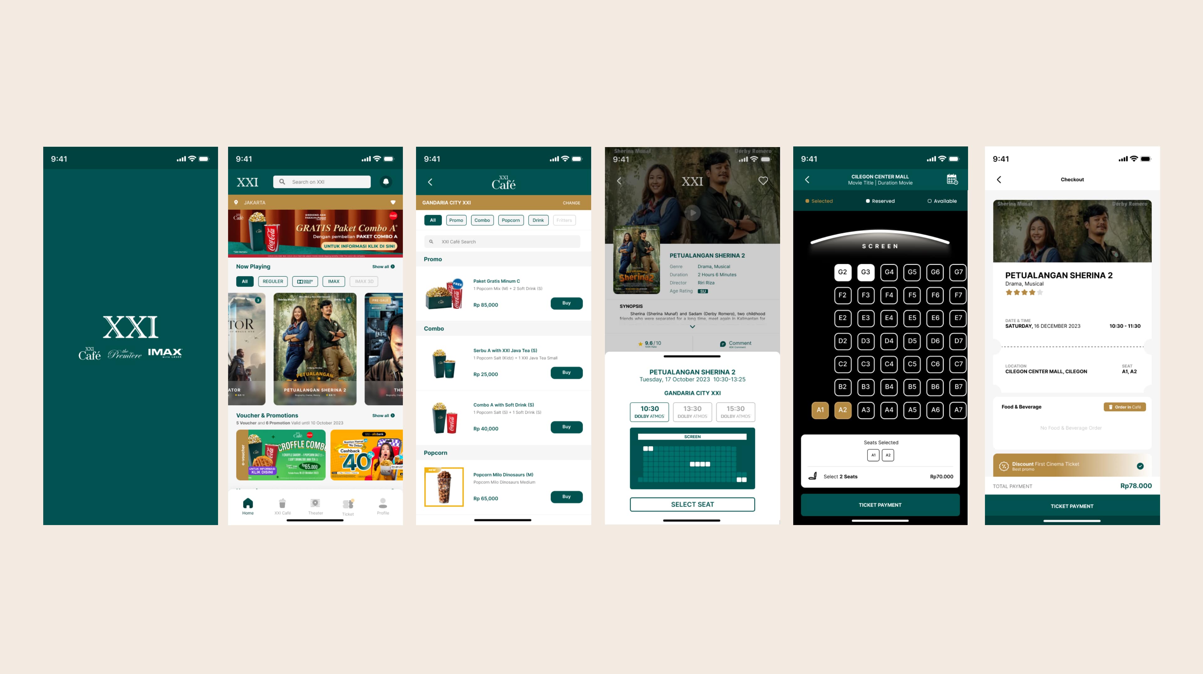 Redesign Cinema XXI Apps is a mobile application designed for Simplify the process of ordering cinema tickets. this application intended for film viewers who are looking for a way that practical and efficient for booking seats, explore movie options, and access showtimes.